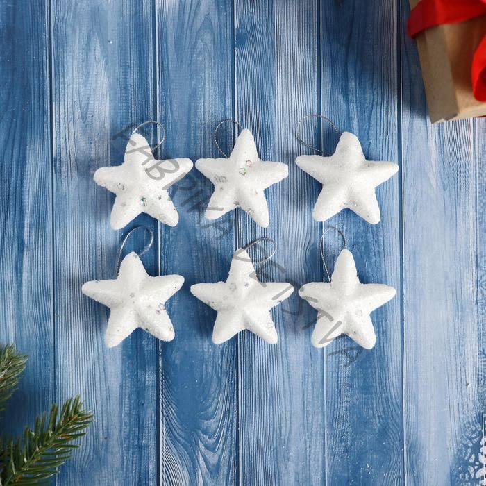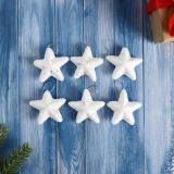 Ёлочные игрушки 6 шт. «Зимнее волшебство. Звёздочка - морозный блеск» пластик, 4.5 см, белый