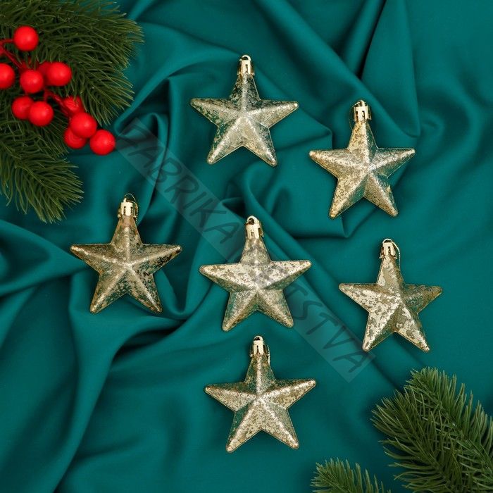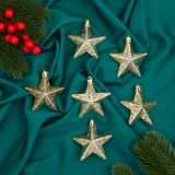 Ёлочные игрушки 6 шт. «Зимнее волшебство. Звёзды грация» пластик, 7x7 см, светлое золото