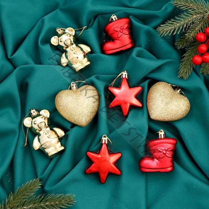 Ёлочные игрушки 8 шт. «Зимнее волшебство. Ассорти» пластик, золото/красный
