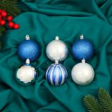 Ёлочные игрушки «Агнет» полосы, шары новогодние, набор d=6 см, 12 шт., серебристо-синий