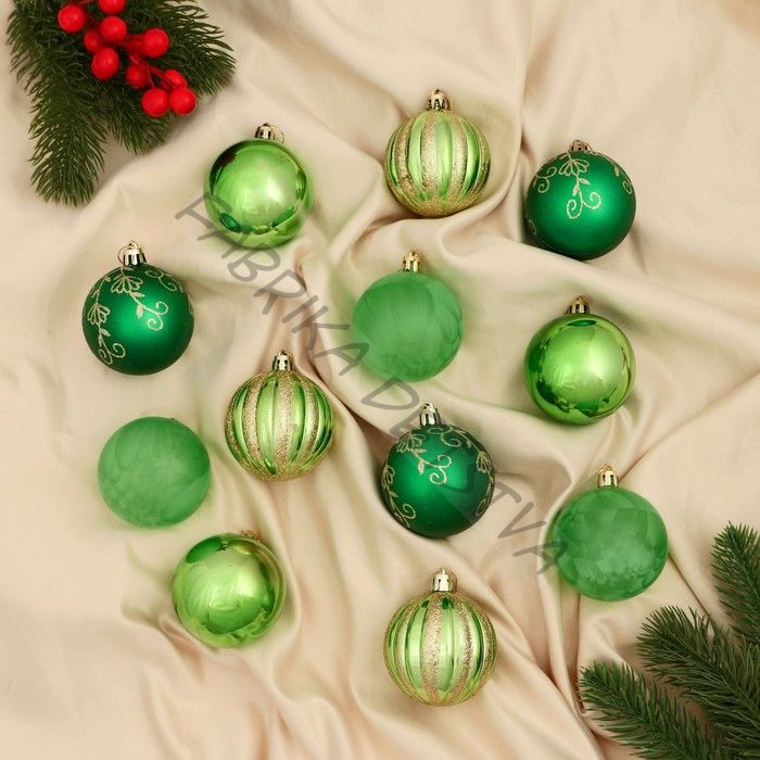 Ёлочные игрушки «Агнет», шары новогодние, d=6 см, набор 12 шт., полосы, зелёный