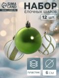 Ёлочные игрушки «Агнет», шары новогодние, d=6 см, набор 12 шт., волны, бело-зелёный