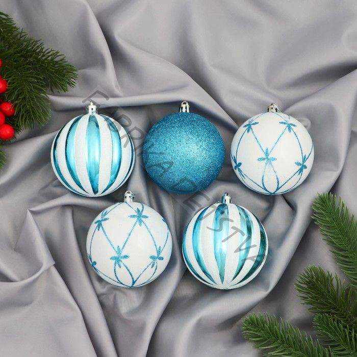 Ёлочные игрушки «Агнет» узоры, шары новогодние, набор d=8 см, 5 шт., МИКС