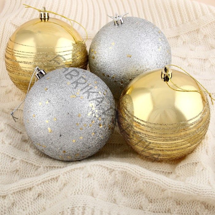 Ёлочные игрушки «Айола», шары новогодние, d=10 см, набор 4 шт., золотисто-серебристый