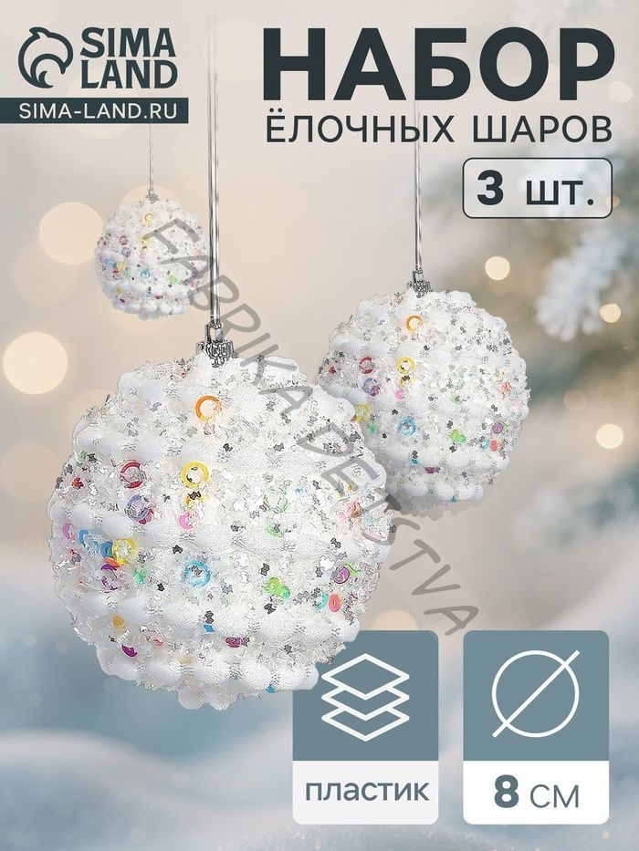 Ёлочные игрушки «Акли», шары новогодние, d=8 см, 3 шт., белый