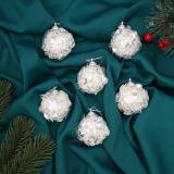 Ёлочные игрушки «Альваро», шары новогодние, d=5 см, набор 6 шт., пайетки, белый
