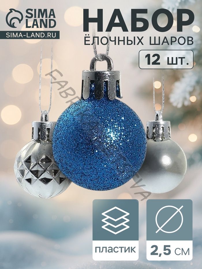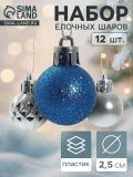 Ёлочные игрушки «Альянс», шары новогодние, d=2.5 см, набор 12 шт., серебристый/синий