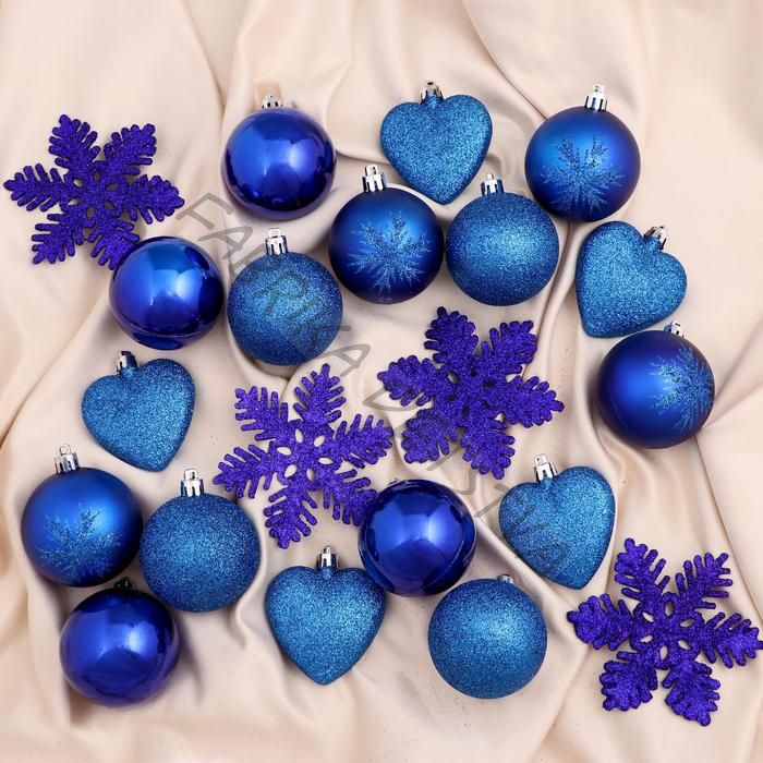 Ёлочные игрушки «Амур», шары новогодние, 30 шт. (16 шаров, 6 сердец, 8 снежинок), синий
