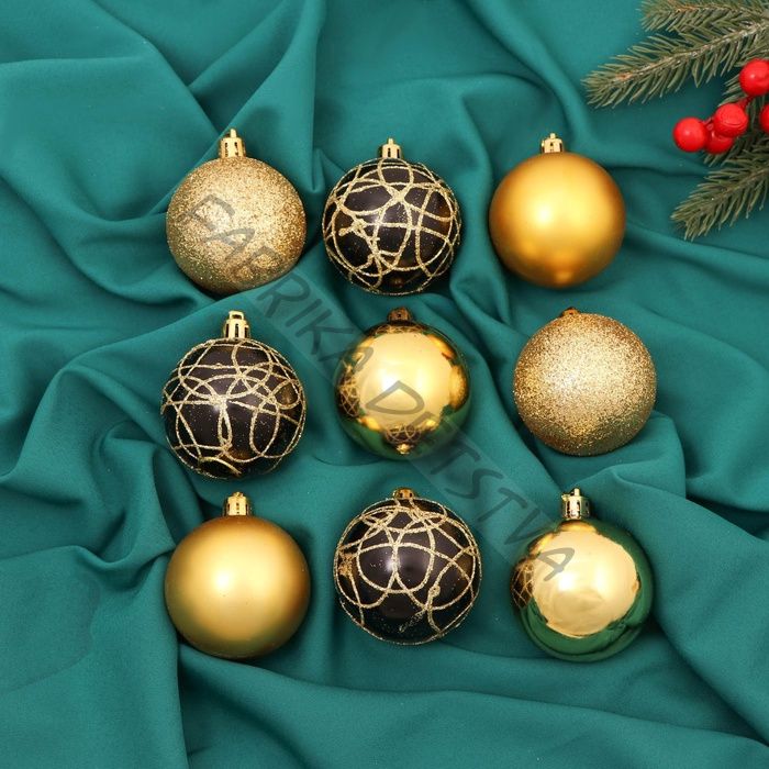 Ёлочные игрушки «Авива», шары новогодние, d=6 см, набор 9 шт., золотистый