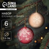 Ёлочные игрушки «Ажур», шары новогодние, d=7.5 см, набор 6 шт., красный/бежевый