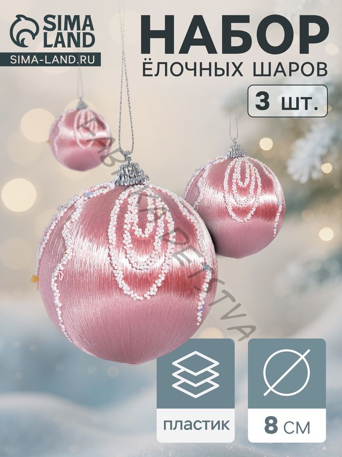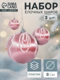 Ёлочные игрушки «Бамби», шары новогодние, d=8 см, 3 шт., розовый