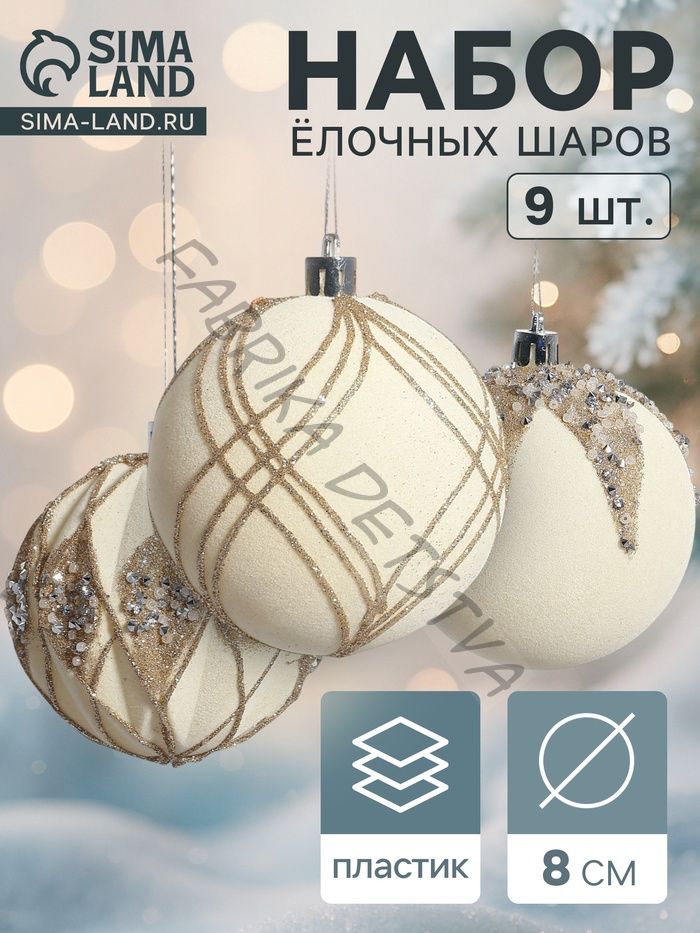 Ёлочные игрушки «Бархат. Фестиваль», шары новогодние, d=8 см, 9 шт., сияние, белый