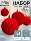 Ёлочные игрушки «Бархат. Время праздника», шары новогодние, d=6 см, 6 шт., классик, красный