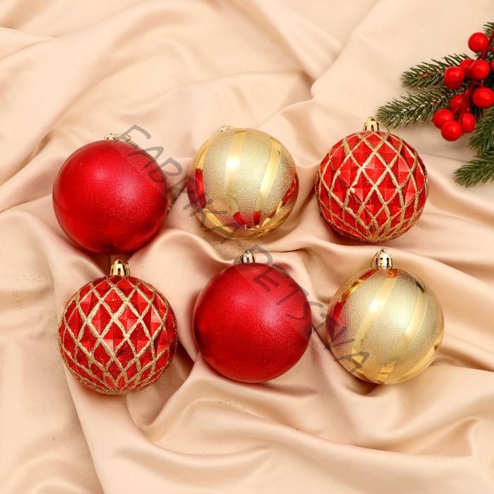 Ёлочные игрушки «Беата сеточка», шары новогодние, d=8 см, набор 6 шт., золотисто-красный