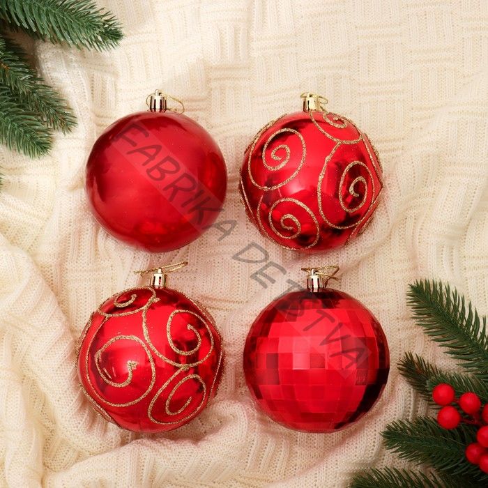 Ёлочные игрушки «Чары», шары новогодние, набор d=10 см, 4 шт., красный