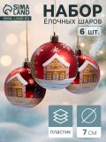 Ёлочные игрушки «Домик», шары новогодние, d=7 см, набор 6 шт., красный