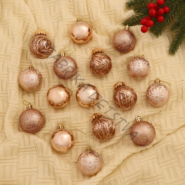 Ёлочные игрушки «Фестиваль», шары новогодние, d=5 см, набор 16 шт., золото