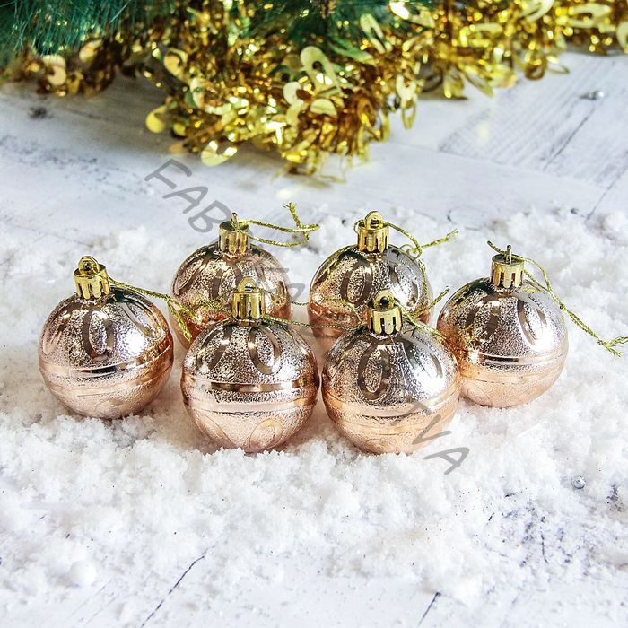 Ёлочные игрушки «Флёр», шары новогодние, d=5 см, набор 6 шт., золото