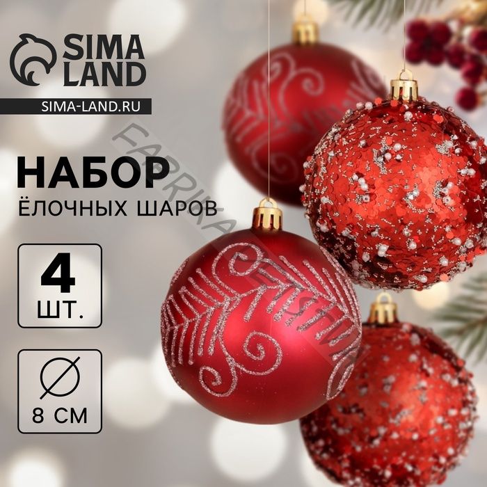 Ёлочные игрушки «Гарет», шары новогодние, d=8 см, набор 4 шт., красный