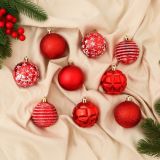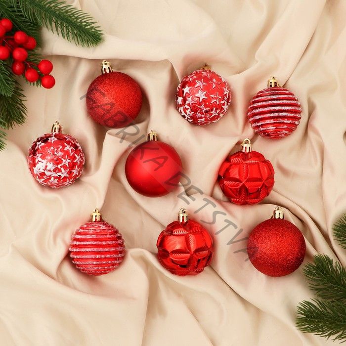 Ёлочные игрушки «Гармония», шары новогодние, d=5.5 см, набор 9 шт., звёзды, полоски, красно-белый