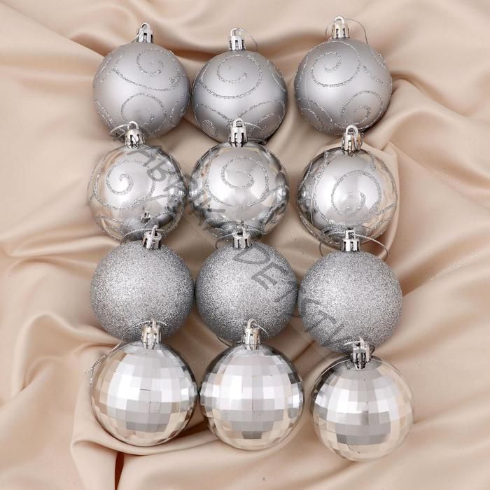 Ёлочные игрушки «Глория», шары новогодние, d=6 см, набор 12 шт., серебро