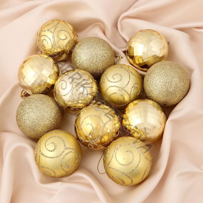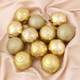 Ёлочные игрушки «Глория», шары новогодние, d=6 см, набор 12 шт., золотистый