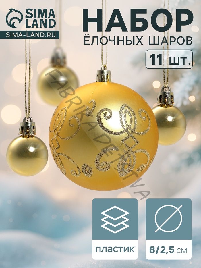 Ёлочные игрушки «Глория - вензель», шары новогодние, 11 шт., d=8/2.5 см, золото