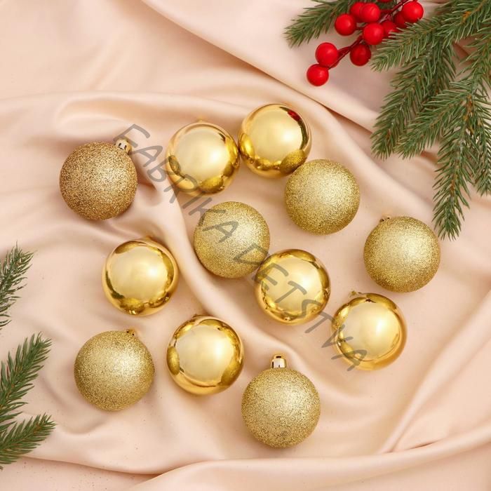 Ёлочные игрушки «Глянцевый блеск», шары новогодние, d=5 см, набор 12 шт., золотистый