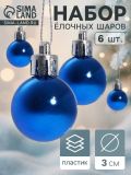 Ёлочные игрушки «Глянец», шары новогодние, d=3 см, набор 6 шт., синий