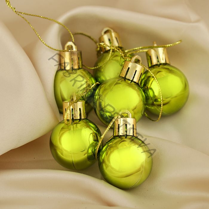 Ёлочные игрушки «Глянец», шары новогодние, d=3 см, набор 6 шт., зелёный