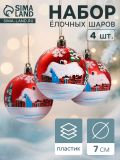 Ёлочные игрушки «Избушка», шары новогодние, d=7 см, набор 4 шт., красный