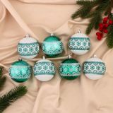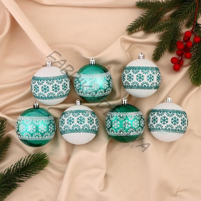 Ёлочные игрушки «Изумрудик-снежный орнамент», шары новогодние, d=8 см, набор 7 шт., бело-зелёный