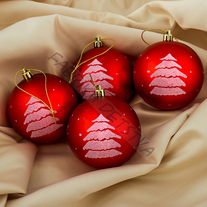 Ёлочные игрушки «Ёлочка», шары новогодние, d=8 см, набор 4 шт., красный