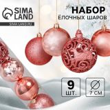 Ёлочные игрушки «Камилла», шары новогодние, d=7 см, набор 9 шт., розовый