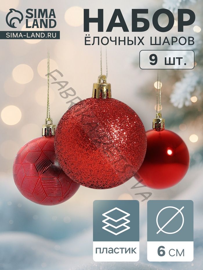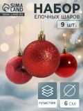 Ёлочные игрушки «Камилла», шары новогодние, набор 9 шт., d=6 см, красный