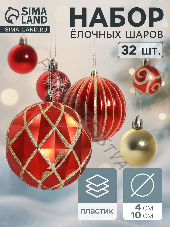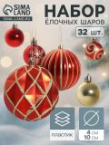 Ёлочные игрушки «Карнавал», шары новогодние, d=4 и 10 см, набор 32 шт., красный золото