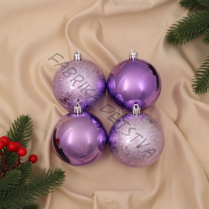 Ёлочные игрушки «Классика», шары новогодние, набор 4 шт., d=8 см, сиреневый