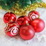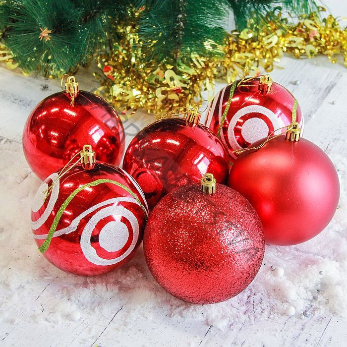 Ёлочные игрушки «Круги ассорти», шары новогодние, набор d=10 см, 6 шт., красный