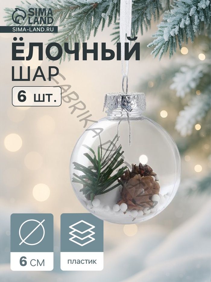 Ёлочные игрушки «Льдинка - шишки», шары новогодние, d=6 см, набор 6 шт., прозрачный
