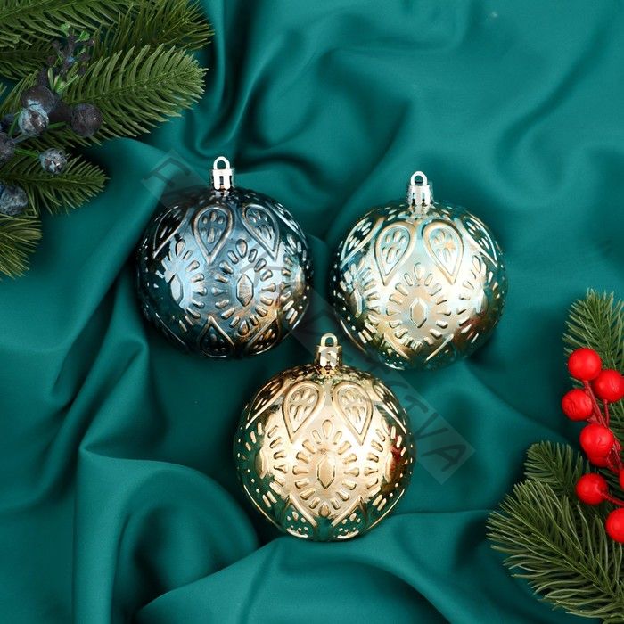 Ёлочные игрушки «Мадлен» капельки, шары новогодние, d=8 см, набор 3 шт., МИКС