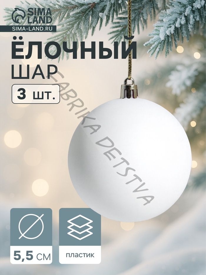 Ёлочные игрушки «Матовый», шары новогодние, d=5.5 см, набор 3 шт., белый