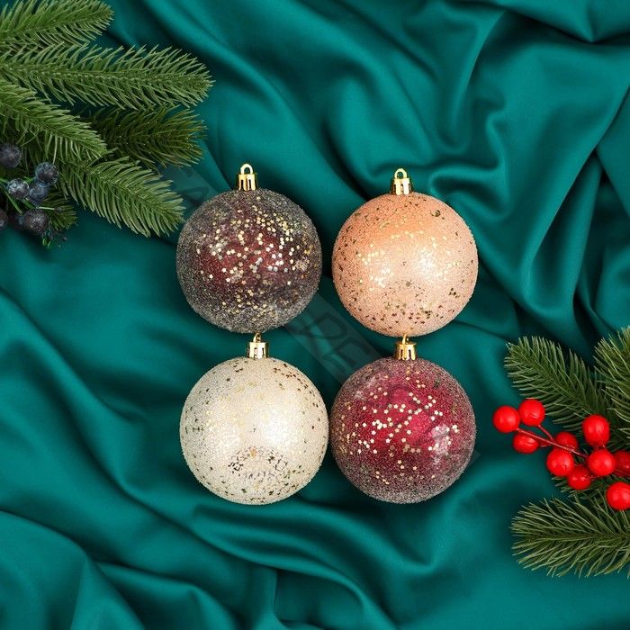 Ёлочные игрушки «Мэдисон», шары новогодние, набор d=8 см, 4 шт., МИКС