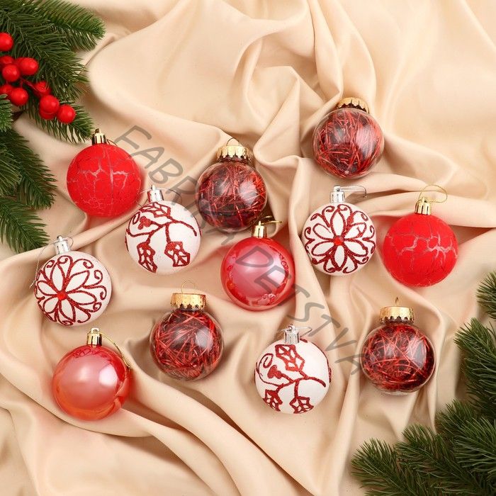 Ёлочные игрушки «Мелодия элитная», шары новогодние, d=6 см, набор 12 шт., ассорти, белый/красный