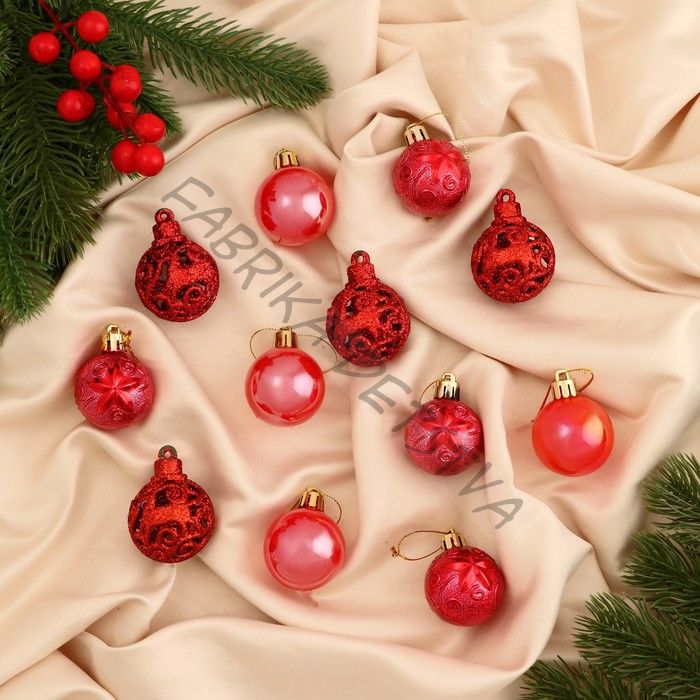 Ёлочные игрушки «Мелодия», шары новогодние, d=4 см, набор 12 шт., орнамент, красный