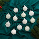 Ёлочные игрушки «Мелодия», шары новогодние, d=6 см, 12 шт., узор треск, белый
