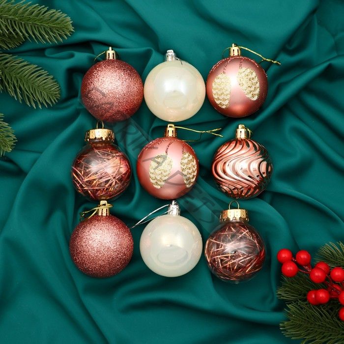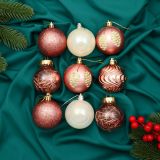 Ёлочные игрушки «Мелодия», шары новогодние, d=6 см, набор 9 шт., волны, шишки, белый/розовый