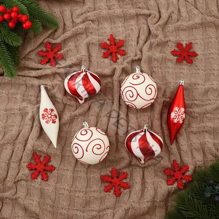 Ёлочные игрушки «Морозный день», новогодние, набор 22 шт., узоры, красно-белый