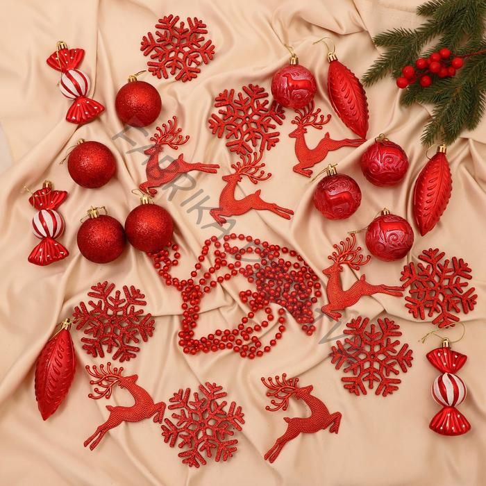 Ёлочные игрушки «Морозный день», новогодние, набор 27 шт., красный