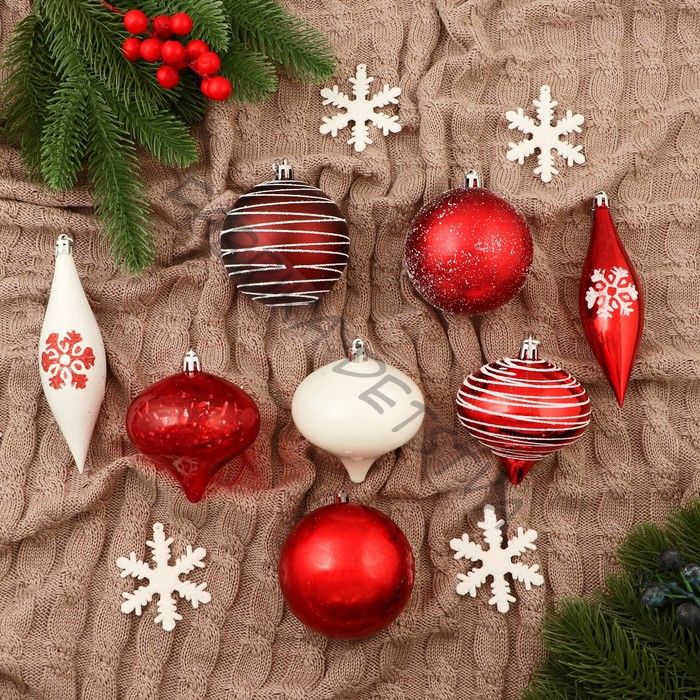 Ёлочные игрушки «Морозный день», шары новогодние, 22 шт., красно-белый