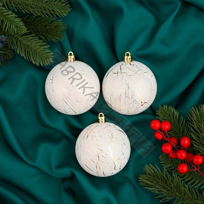 Ёлочные игрушки «Мюриель», шары новогодние, d=8 см, набор 3 шт., бело-золотой